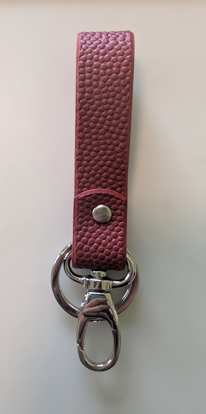 These keychains are made from the same leather they use to make professional footballs and basketballs out of. The leather is tanned by a US company in Illinois.