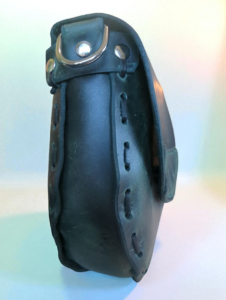This Hip purse is made from a rich pull-up leather, which changes from dark to light when manipulated. The inside is the soft sueded side of the leather -- it is unlined. Hand laced gussets. Perfect for Ren Fairs.